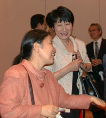 ![]() 増田さん選者津島佑子氏と談笑 ![]() 中沢氏とすばる編集部長谷川氏 ![]() |